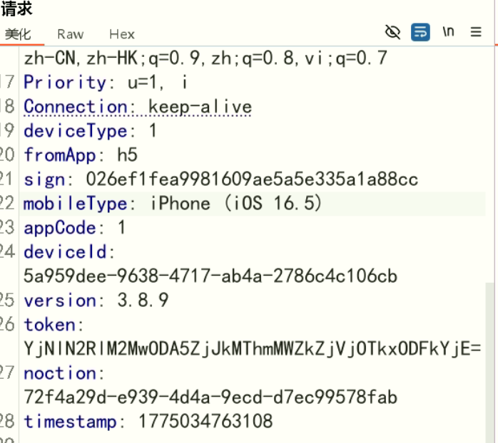 keys = ["token", "deviceId", "deviceType", "fromApp", "mobileType", "version", "appCode", "noction", "timestamp"]